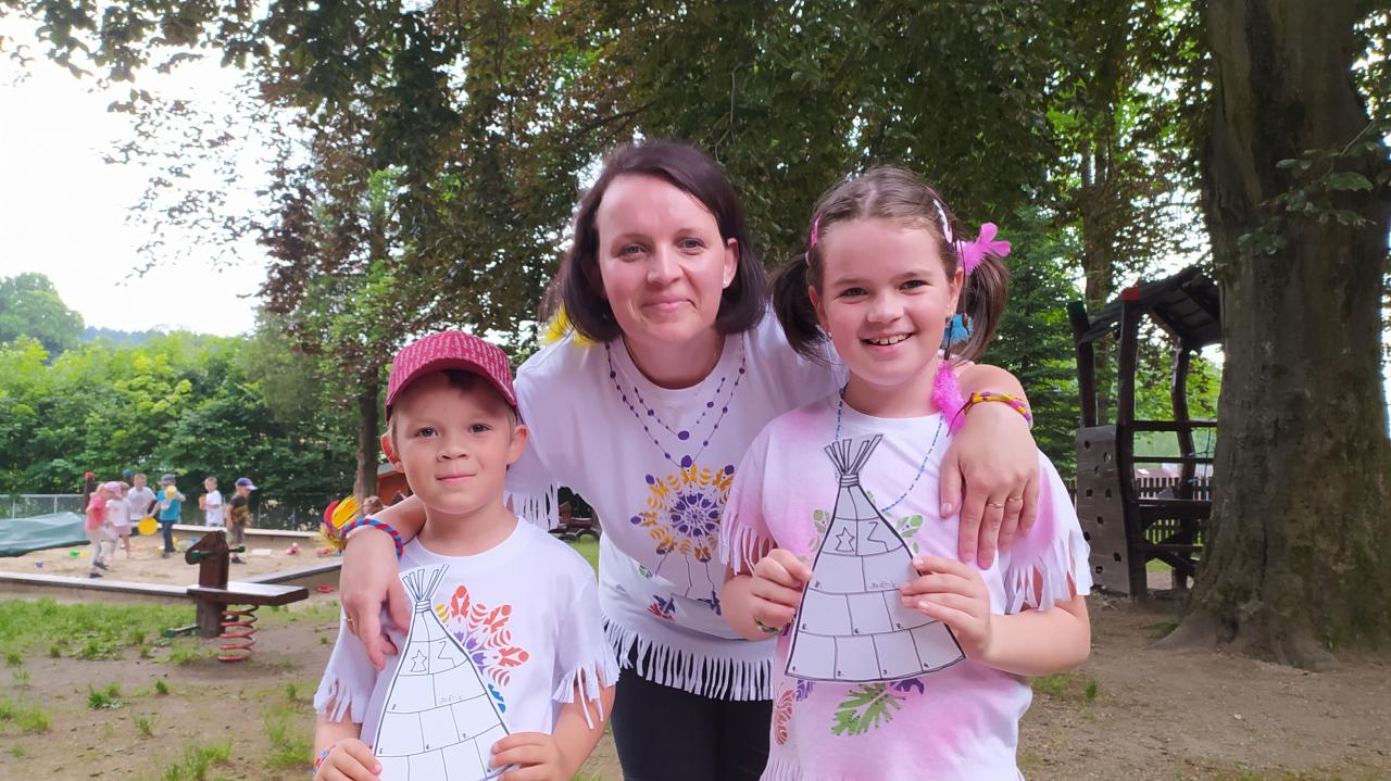 Rozloučení se školkou proběhlo po absolvování indiánské stezky na zahradě naší MŠ.